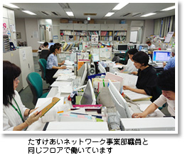 生活クラブの組合員活動を通して「たすけあいって大切だよね」という共感からスタートし、生活クラブが取り組む組合員どうしの「たすけあいのしくみ」であるエッコロ共済、エッコロプラス、生活クラブ共済”ハグくみ”の事務業務やフリーダイヤルの対応をしています。