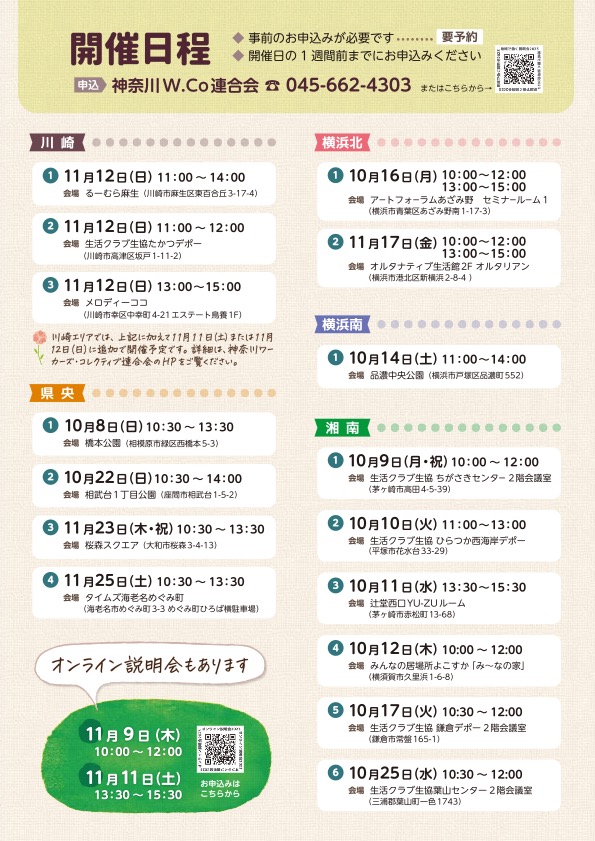 11月12日(日)11:00~12:00生活クラブ生協たかつデポー川崎市高津区坂戸1-11-2