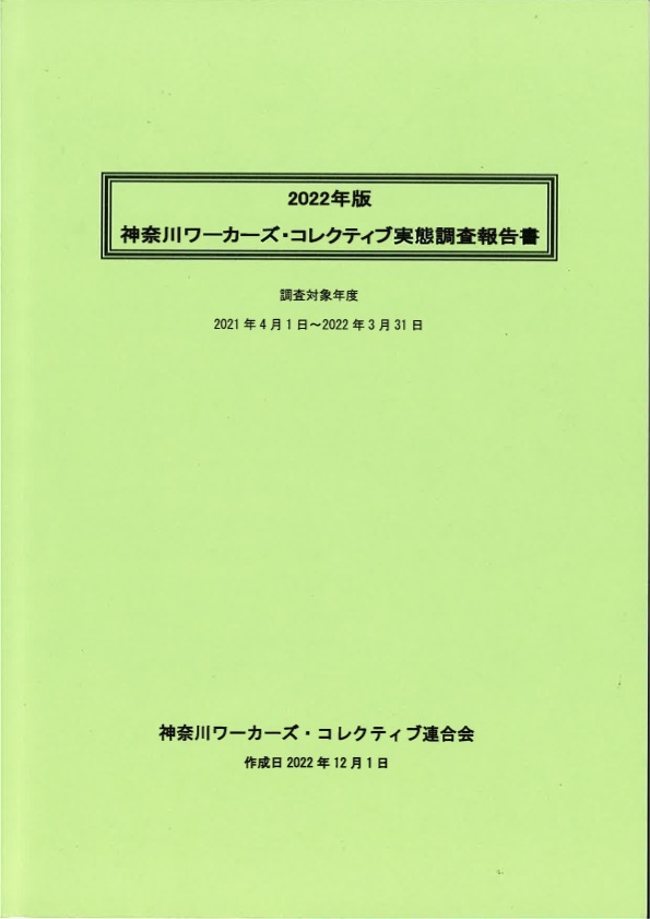 「実態調査報告書」は、神奈川ワーカーズ・コレクティブ連合会に集う個々のワーカーズ・コレクティブの前年度の事業実績、メンバーの働き方、活動状況を、業種別、自治体・行政区ごとに分類して表したものです。