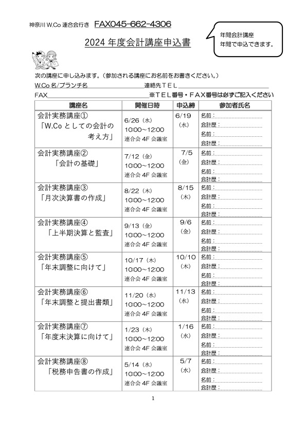 | 申込先 | W.Co連合会 FAX:045-662-4306 申込フォームはこちらから |
