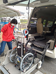 コロナ禍で、外出に対する考え方も変わり必要最低限の通院送迎が多くなっています。それぞれの利用者の希望時間や状況に合わせてコーディネートしています。最近は階段昇降機が必要な利用者の加入も増えています。