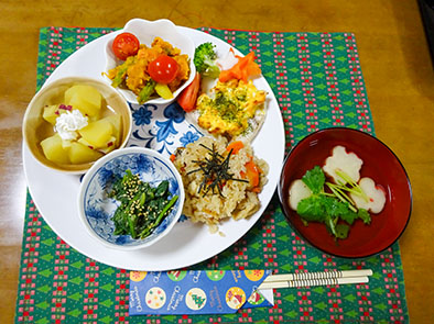 昼食は生活クラブの調味料・食材を中心に地場野菜等も活用し、安心・安全な手作りを提供しています。行事食などもとても好評です!