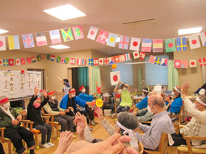 小規模多機能型居宅介護では毎月15日に利用者と地域の方が一緒に歌を歌い、体操をし、当日の企画に参加し楽しんでします。