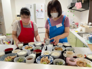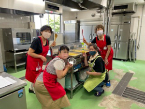 60代メンバー3名、40代~50代メンバー3名、計6名で業務を行っています。世代の違うメンバーですが、お互いにカバーしあいたすけあいながら和気あいあいと仕事をしています。食事の提供は主に盛り付けなので、料理に自信のない方でも大丈夫です。介護職員と協力して行います。
