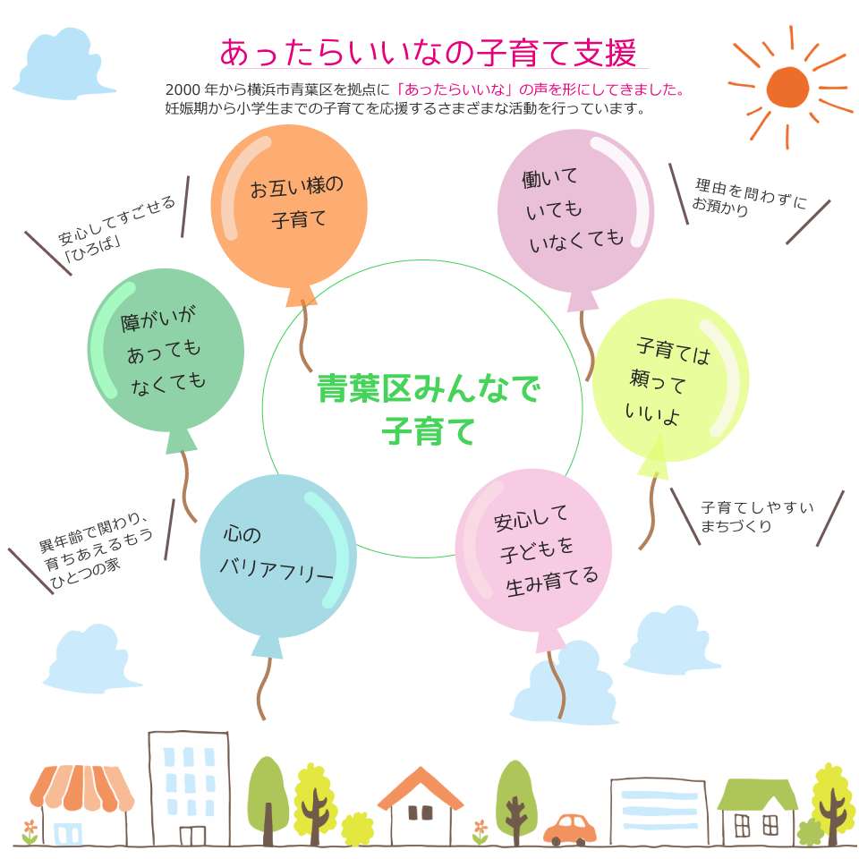 2000年から横浜市青葉区を拠点に“あったらいいな”の声を形にしてきました。妊娠期から小学生までの子育てを応援しています。