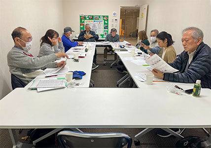 現在活動会員は男女半々で14名、月1回の例会はほかの活動をしている人も参加しやすい夜に開催、活動内容や活動予定、働き方なども話し合っています。